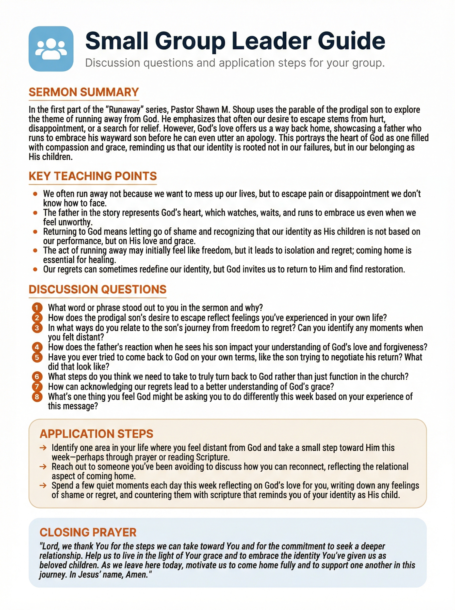 - Small Group Leader Guide — discussion guide ready for small groups