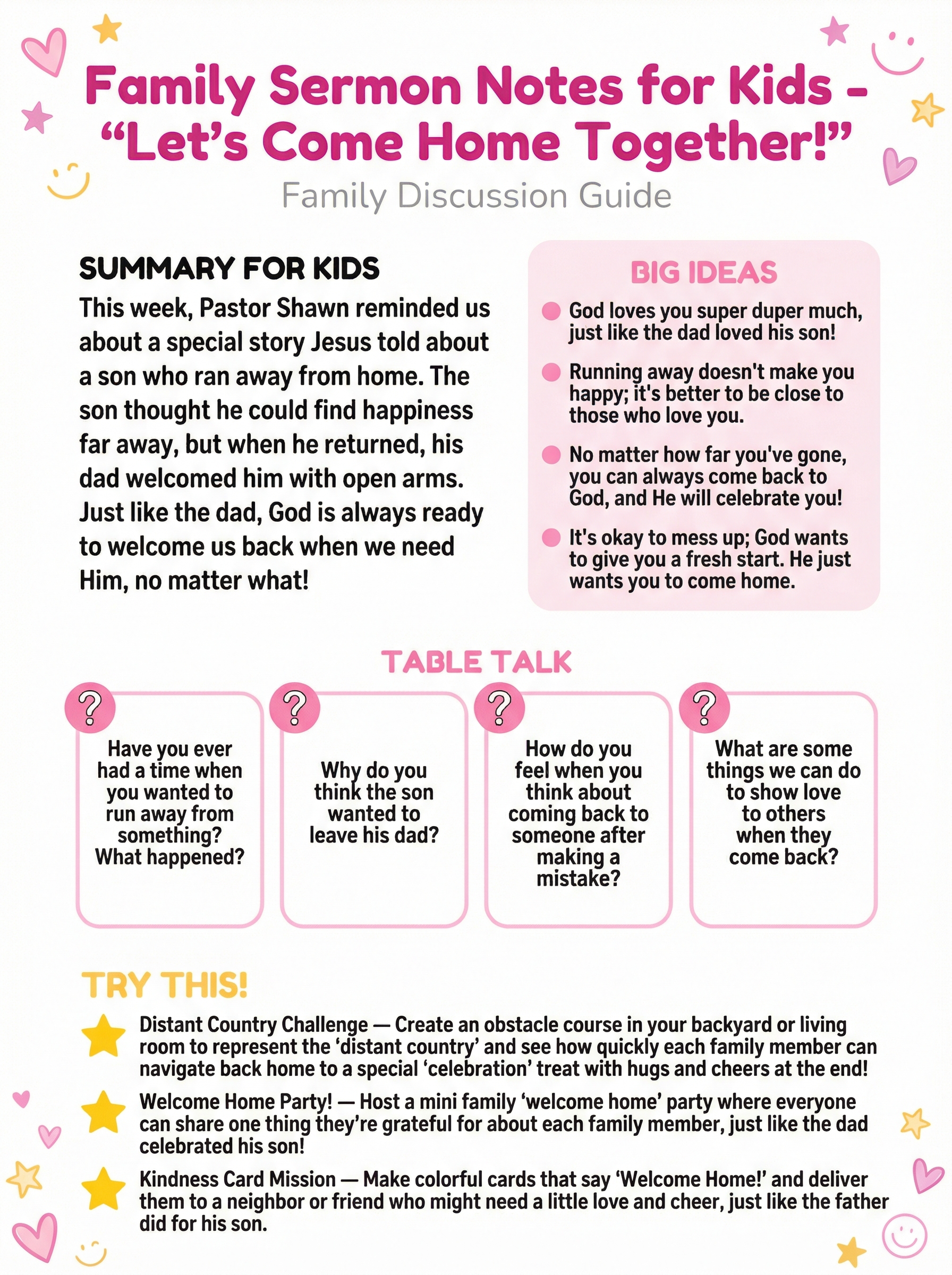 - Family Sermon Notes — kid-friendly notes for family discussions
